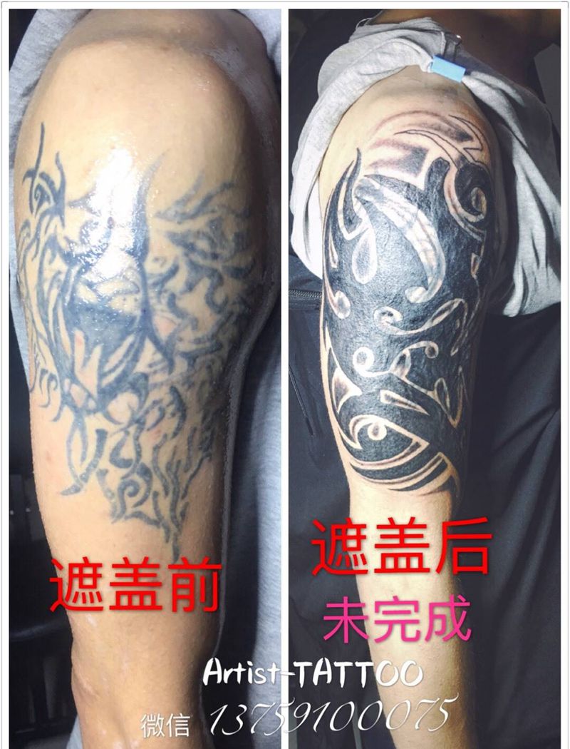 图腾。遮盖。还没弄完。差一小点点纹身图片