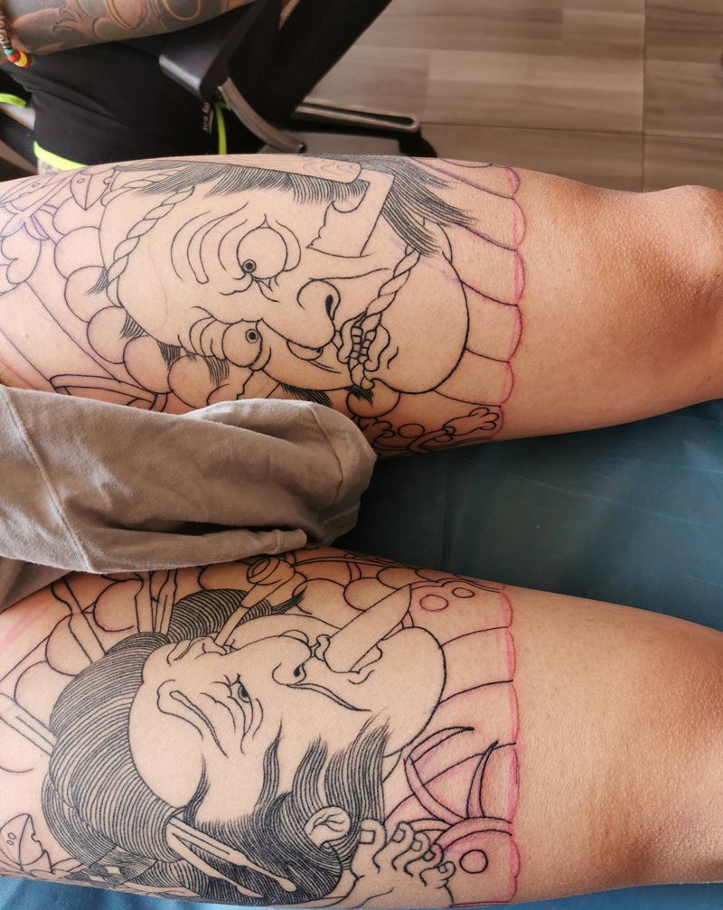 • T网红王老大花腿龙纹身图片_腿部新传统纹身图案