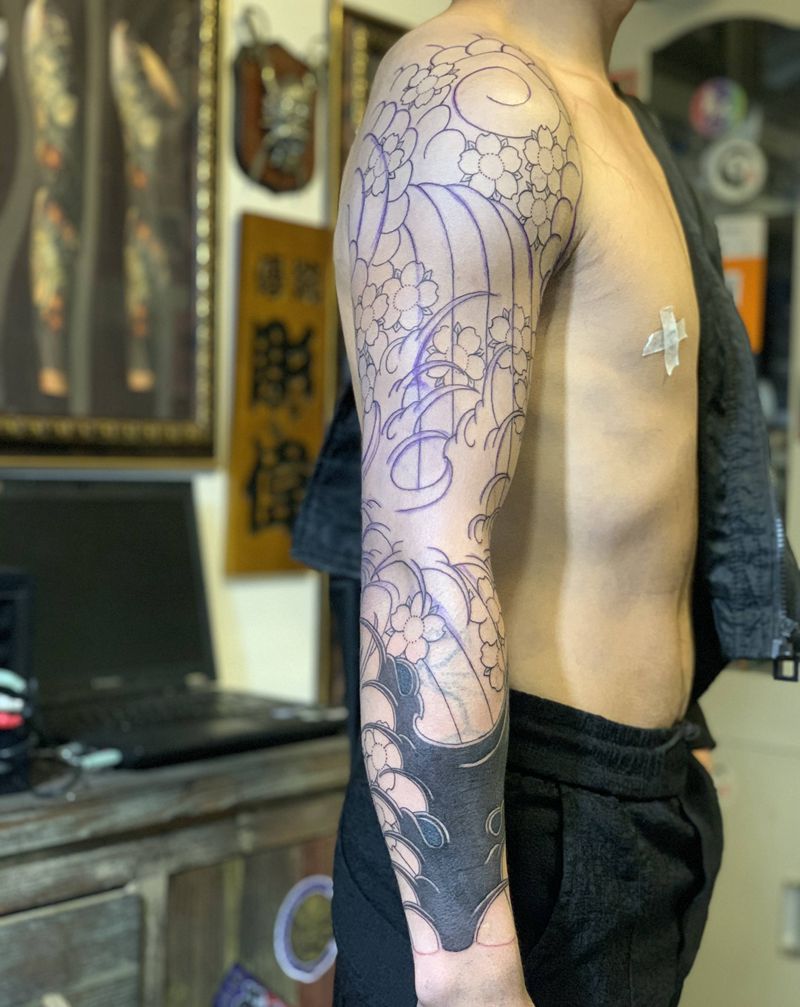 当前位置: 首页 >云南省昆明市纹身店-嘉墨刺青纹身图案>日式老传统水浪樱花云纹身图片_手臂老传统纹身图案
