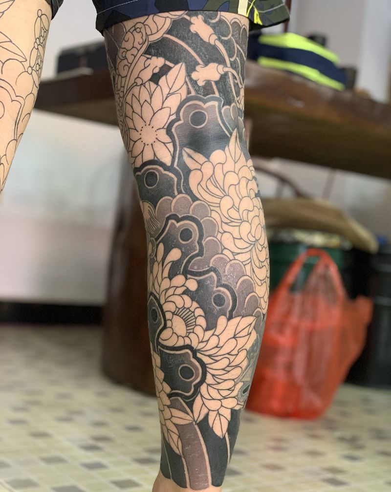 日式老传统通体纹身图片_腿部胸部老传统纹身图案
