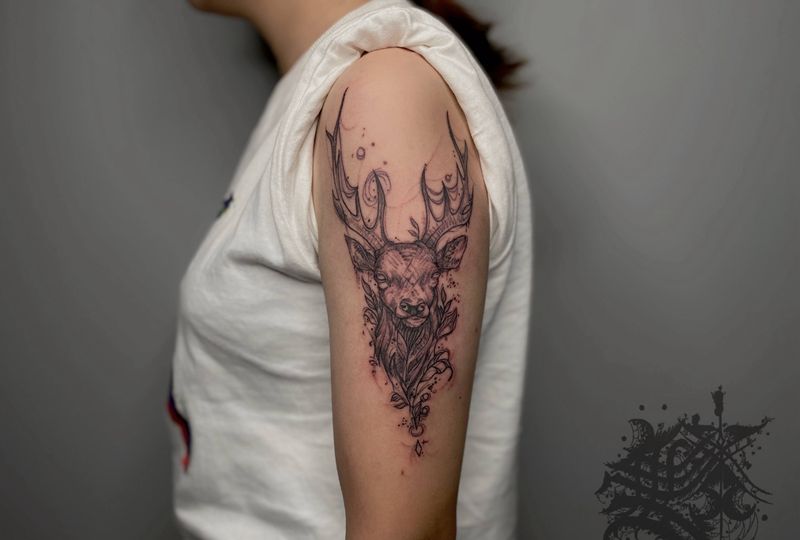 当前位置: 首页 >云南省昆明市纹身店-昆明魅纹身工作室纹身图案>鹿纹身图片_手臂手部纹身图案