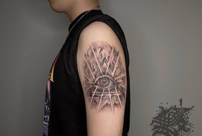 当前位置: 首页 >云南省昆明市纹身店-昆明魅纹身工作室纹身图案>上帝之眼纹身图片_手臂手部纹身图案