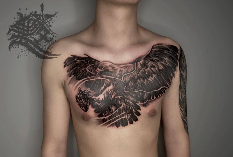 遮盖作品纹身图片_胸部欧美写实纹身图案