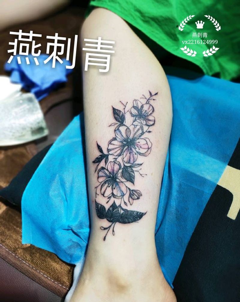 小腿小清新花花盖图纹身图片_腿部纹身图案