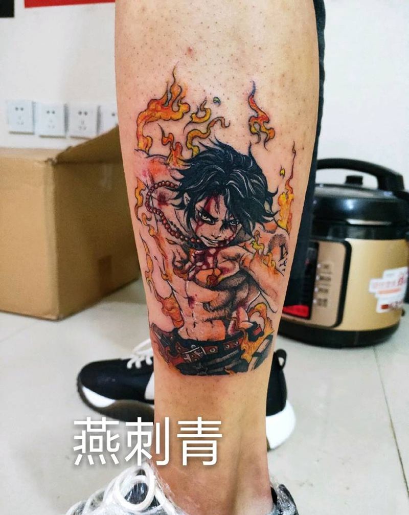 当前位置: 首页 >云南省昆明市纹身店-冯琦刺青纹身图案>海贼王之艾斯纹身图片_脚部腿部动漫系列纹身图案