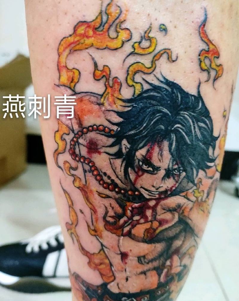 当前位置: 首页 >云南省昆明市纹身店-冯琦刺青纹身图案>海贼王之艾斯纹身图片_脚部腿部动漫系列纹身图案