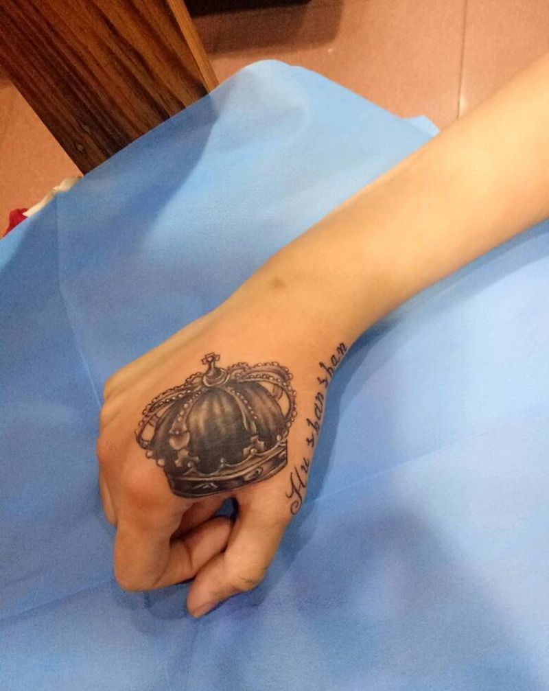 手部王冠加字母!纹身图片_手部欧美成品纹身图案