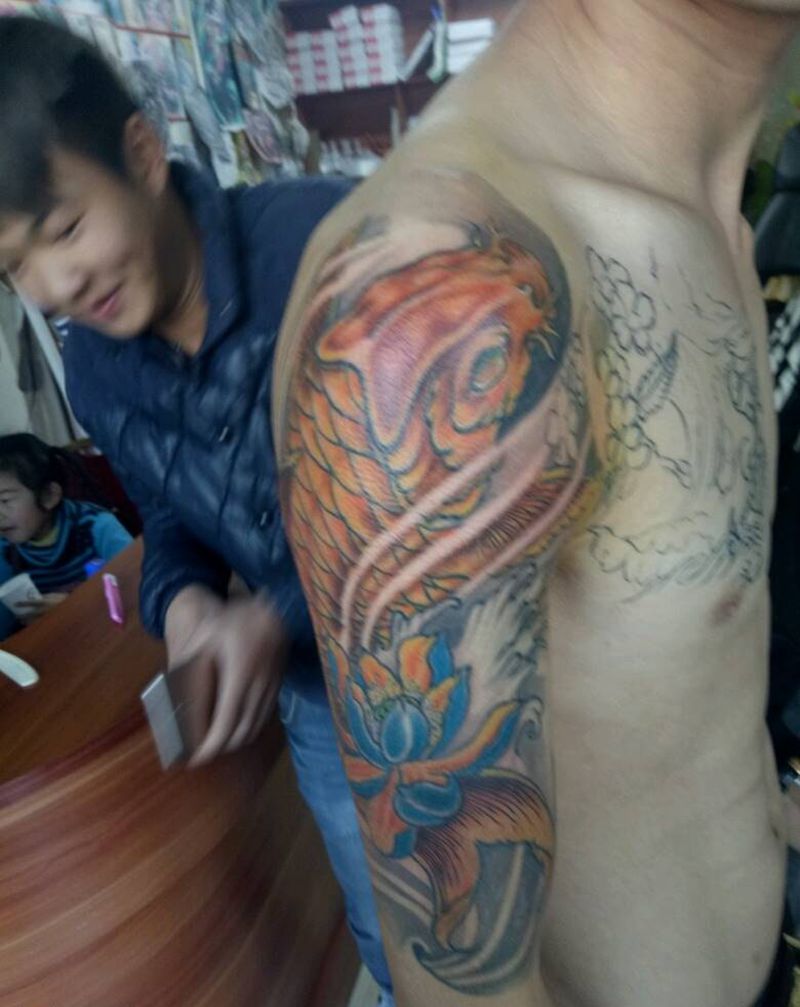 当前位置: 首页 >云南省昆明市纹身店-冯琦刺青纹身图案>鲤鱼纹身图片_肩部传统动物成品纹身图案