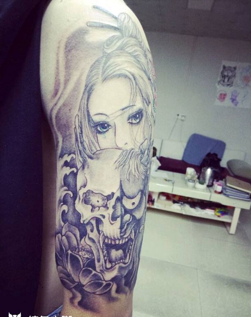 当前位置: 首页 >云南省昆明市纹身店-冯琦刺青纹身图案>艺姬纹身图片_手臂传统人物鬼神成品纹身图案
