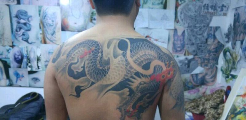 • T云龙九郎纹身图片_背部老传统云龙九郎纹身图案