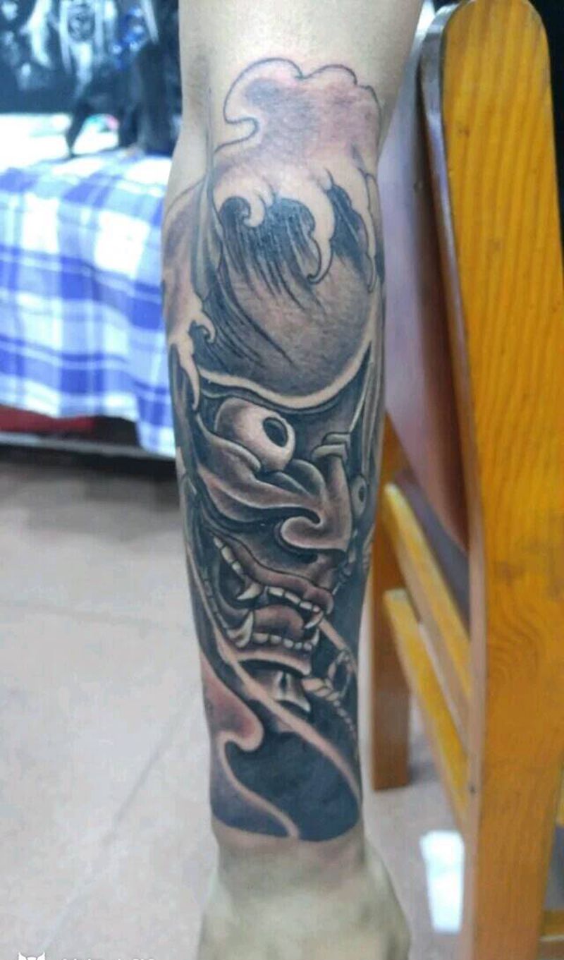 • T网红王老大花腿龙纹身图片_腿部新传统纹身图案