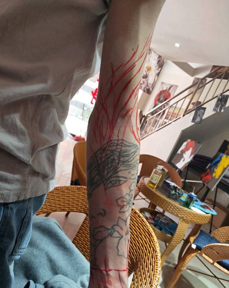 当前位置: 首页 >云南省昆明市纹身店-冯琦刺青纹身图案>花臂黑臂纹身图片_手臂纹身图案