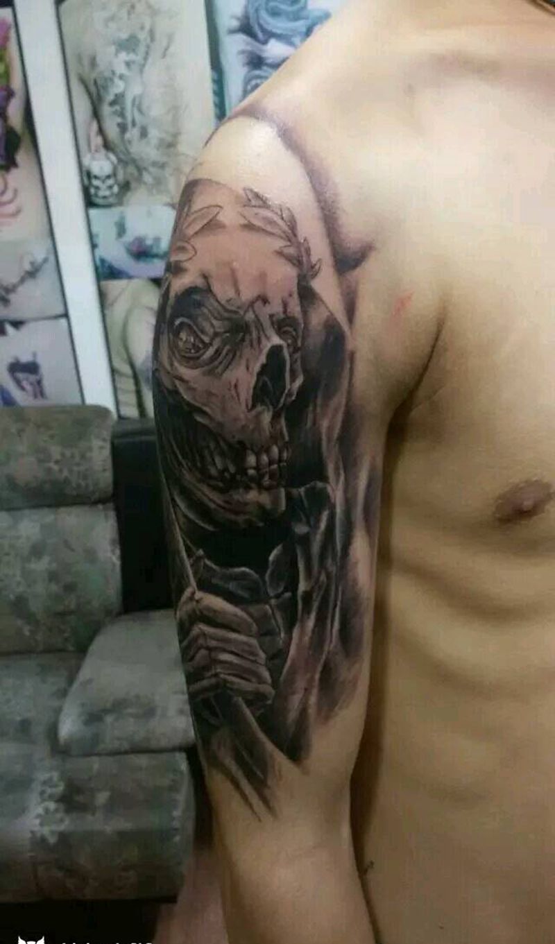 当前位置: 首页 >云南省昆明市纹身店-冯琦刺青纹身图案>死神!纹身图片_手臂欧美人物鬼神成品纹身图案