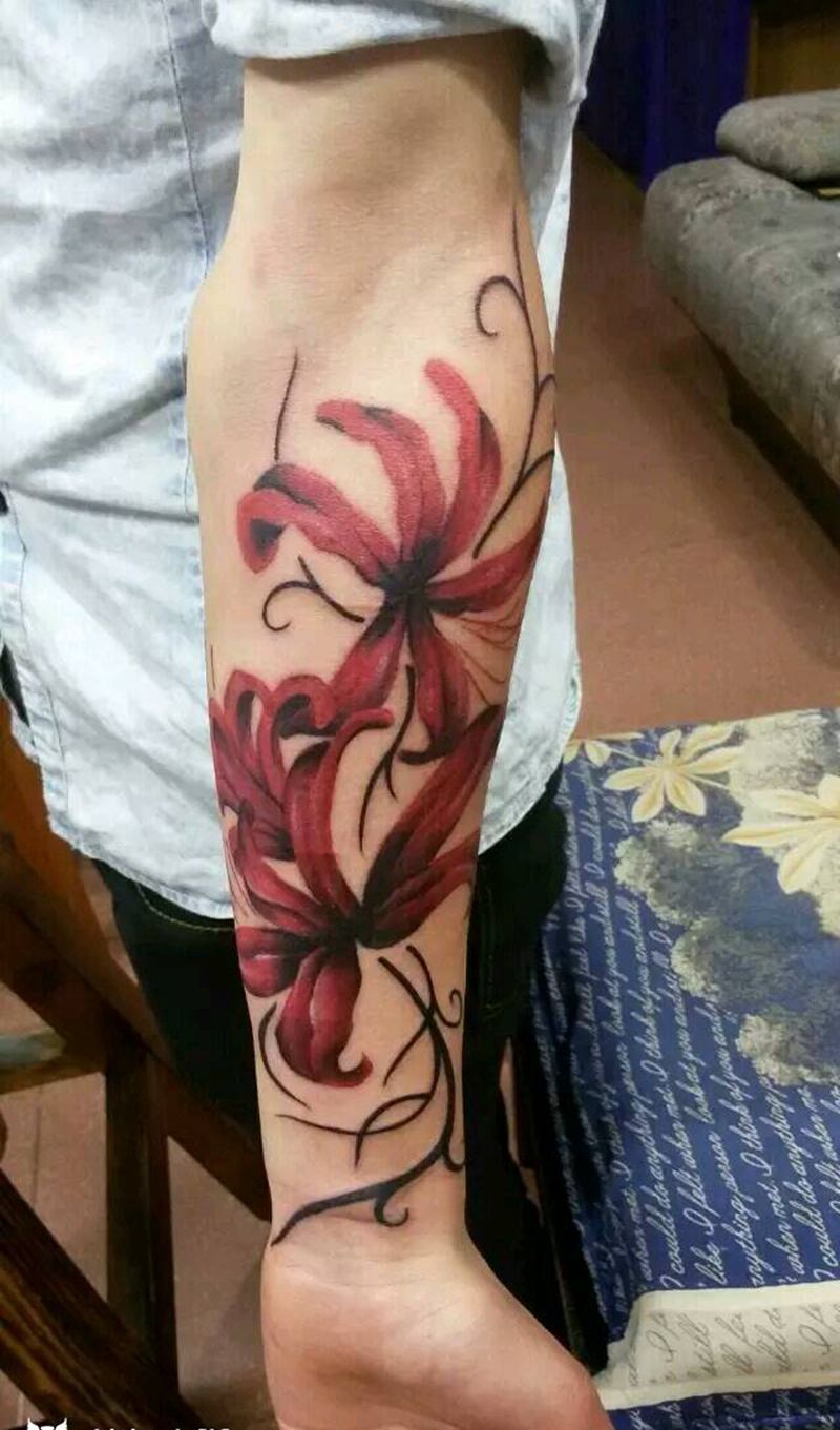 花类纹身作品纹身图片_背部手臂腿部欧美传统清新写实植物情侣成品纹身图案