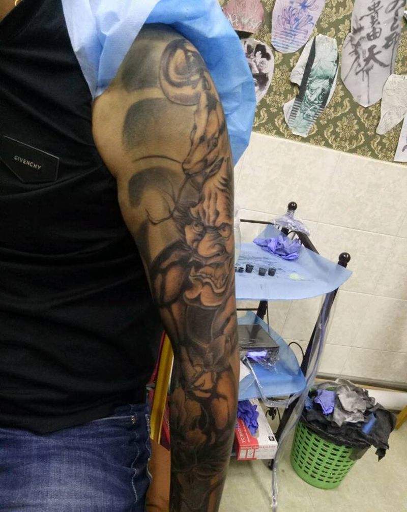 当前位置: 首页 >云南省昆明市纹身店-冯琦刺青纹身图案>花臂纹身图片_肩部手臂手部传统动物人物鬼神原创成品纹身图案