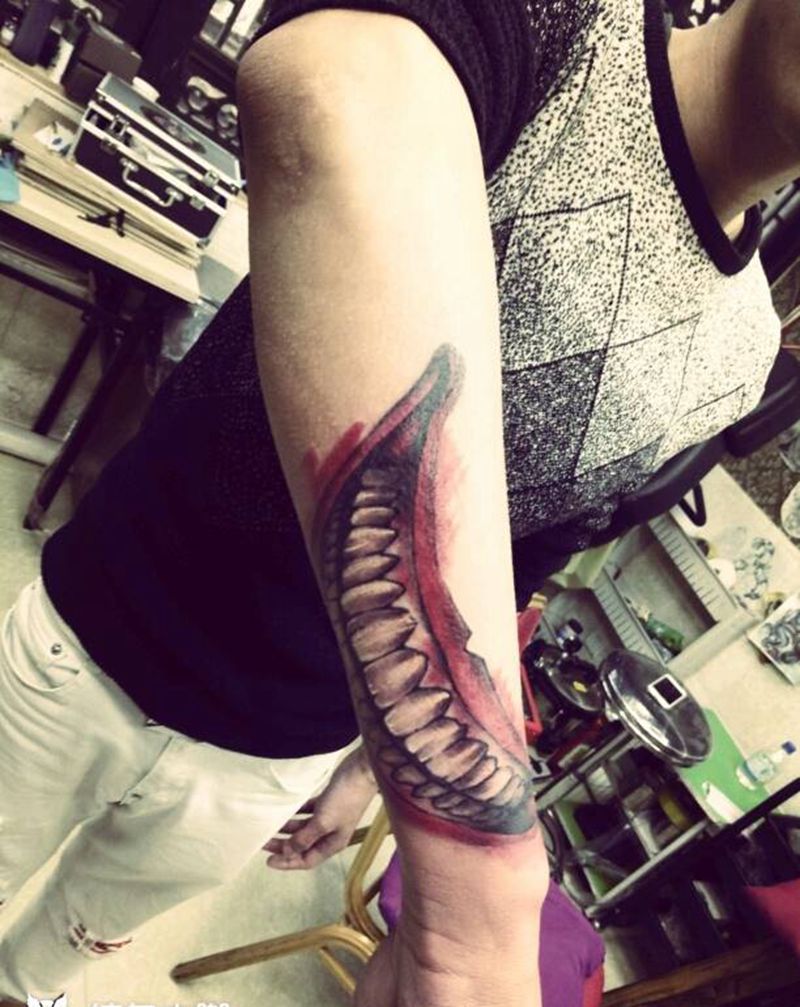 小丑小臂同款嘴巴纹身图片_手臂手部欧美人物成品纹身图案