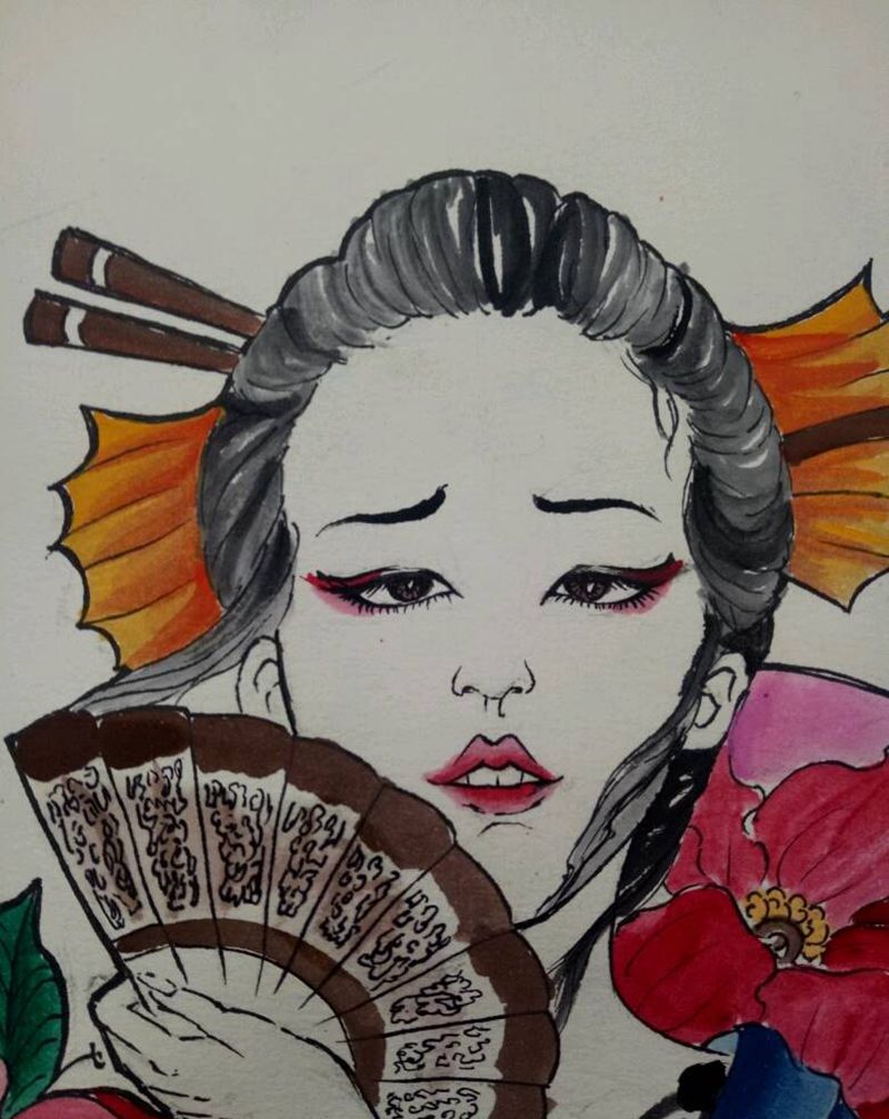 当前位置: 首页 >云南省昆明市纹身店-冯琦刺青纹身图案>艺姬手稿纹身图片