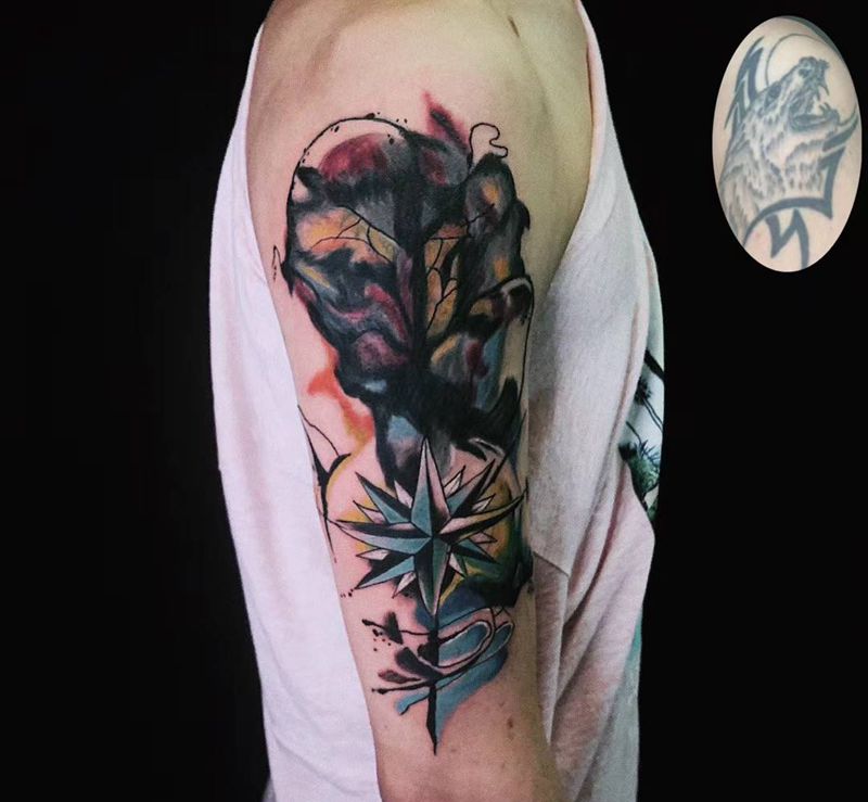 当前位置: 首页 >云南省昆明市纹身店-如也·刺青Tattoo Studio纹身图案>水彩指南针zhegai纹身图片_手臂水彩纹身图案