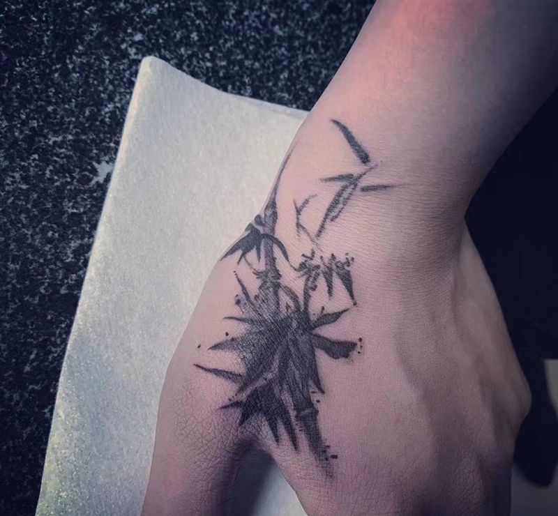 当前位置: 首页 >云南省昆明市纹身店-如也·刺青Tattoo Studio纹身图案>虎口蝎子遮盖纹身图片_手部水墨纹身图案