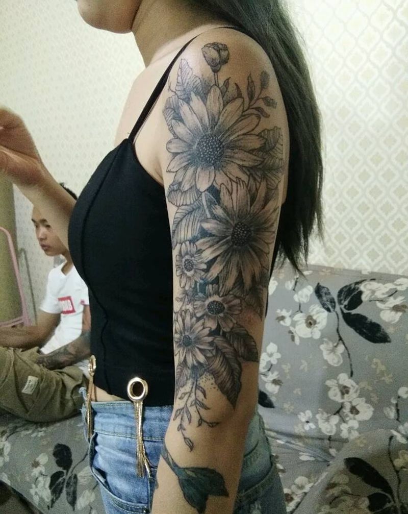 • 女性大花胸纹身_43张霸气漂亮的女性大花胸纹身图案作品