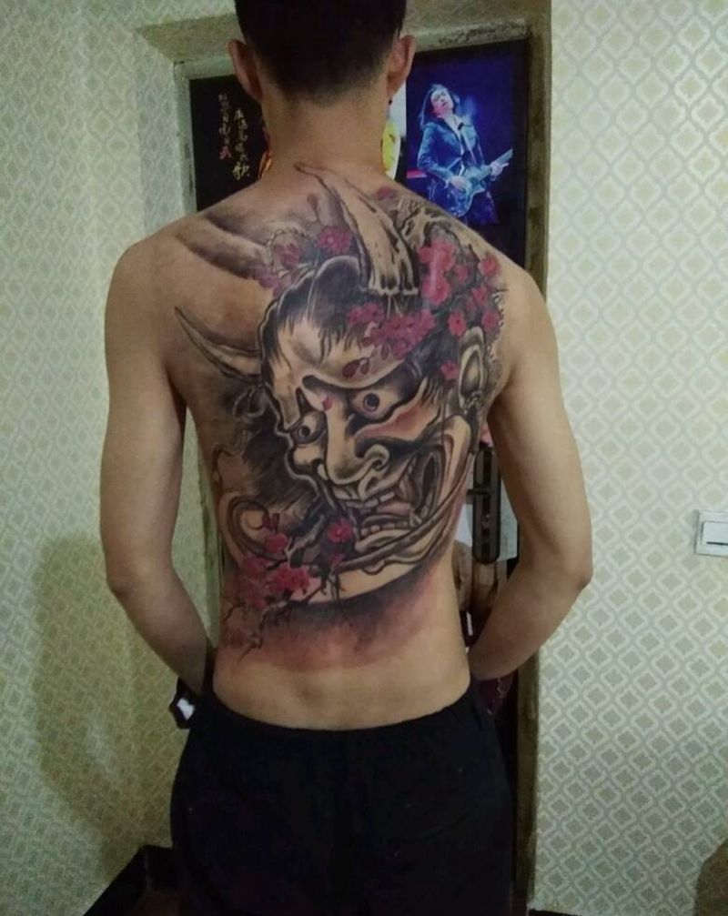 黑灰满背纹身图案