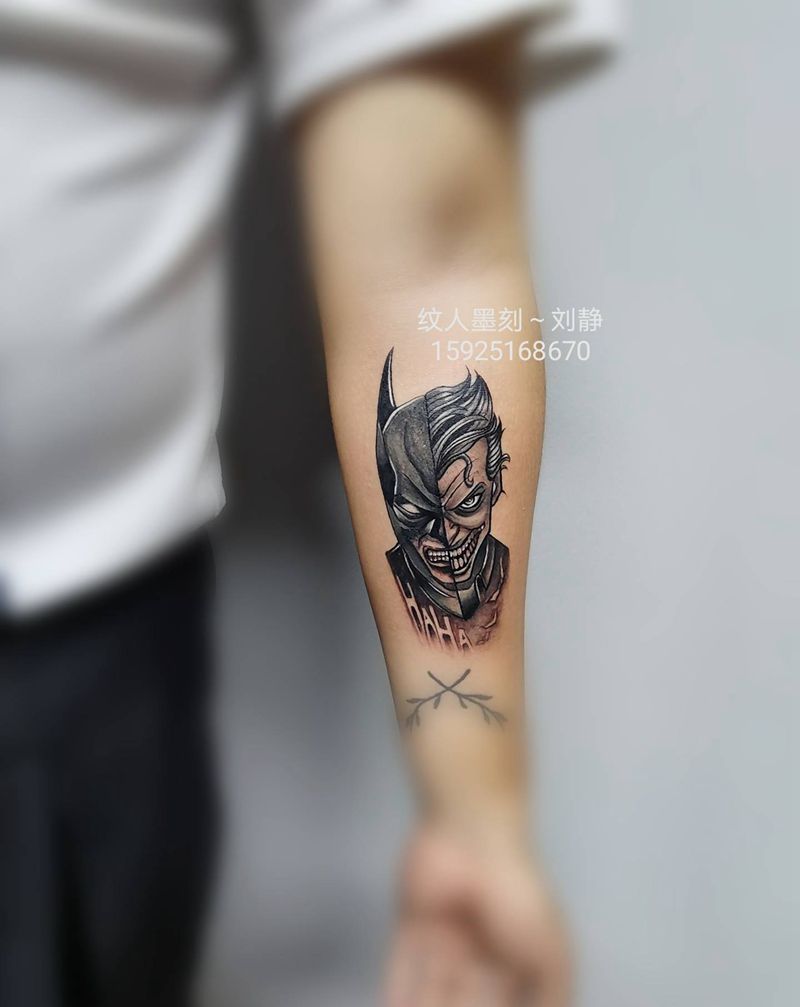 当前位置: 首页 >云南省昆明市纹身店-昆明 纹人墨刻刺青纹身图案>小丑纹身图片_手臂欧美写实纹身图案