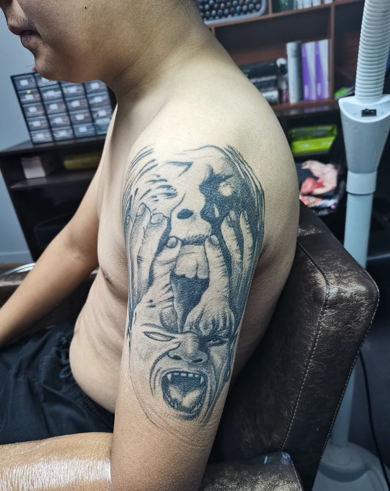 当前位置: 首页 >云南省昆明市纹身店-昆明 纹人墨刻刺青纹身图案>修改失败纹身纹身图片_手臂欧美写实水墨遮盖修改补色纹身图案