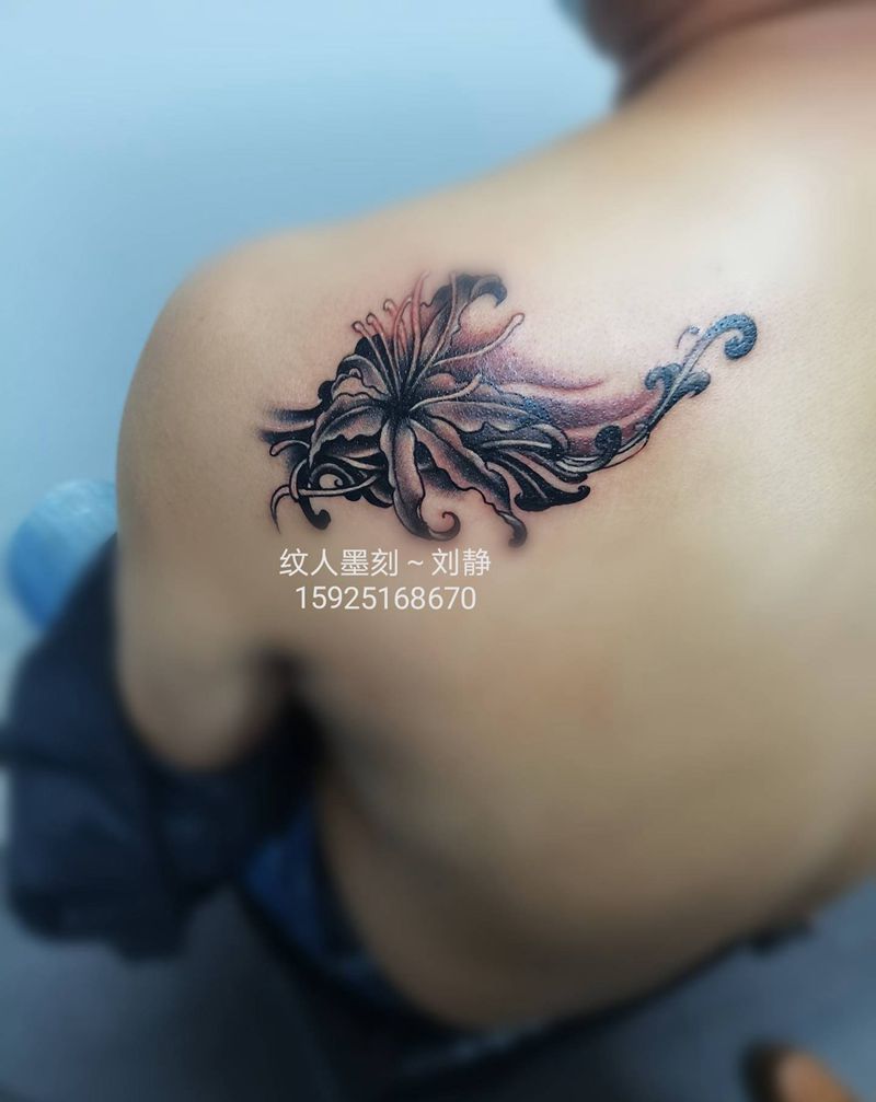 当前位置: 首页 >云南省昆明市纹身店-昆明 纹人墨刻刺青纹身图案>彼岸花纹身图片_背部新传统黑灰纹身图案