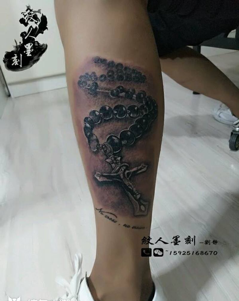 项链纹身图片_腿部欧美宗教昆明云南纹人墨刻成品纹身图案