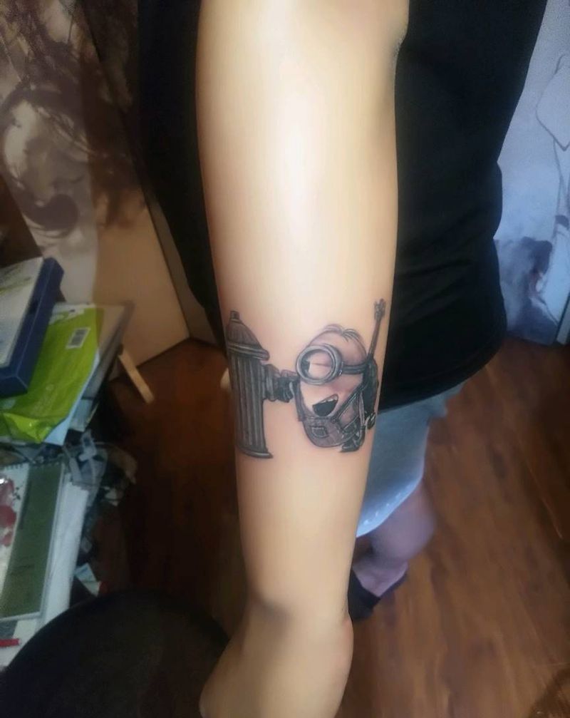 当前位置: 首页 >云南省昆明市纹身店-昆明 纹人墨刻刺青纹身图案>小黄人纹身图片_手臂传统昆明云南纹人墨刻成品纹身图案