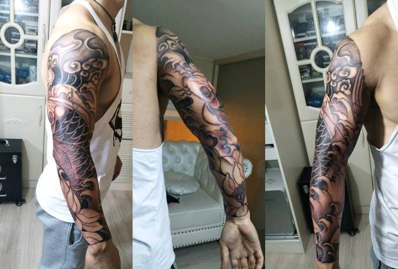 当前位置: 首页 >云南省昆明市纹身店-昆明 纹人墨刻刺青纹身图案>锦鲤花臂纹身图片_手臂手部传统动物昆明云南纹人墨刻成品纹身图案