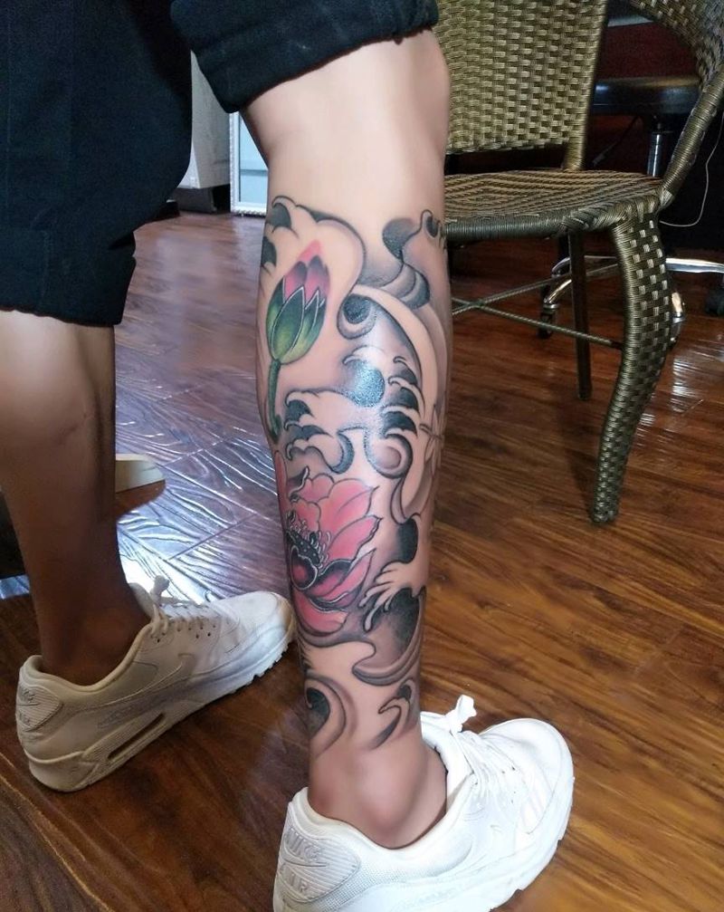 当前位置: 首页 >云南省昆明市纹身店-昆明 纹人墨刻刺青纹身图案>浪小腿纹身图片_腿部传统植物昆明云南纹人墨刻修改成品纹身图案