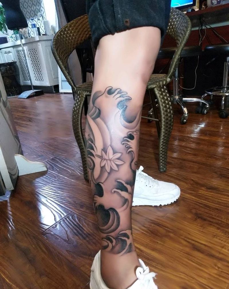 当前位置: 首页 >云南省昆明市纹身店-昆明 纹人墨刻刺青纹身图案>浪小腿纹身图片_腿部传统植物昆明云南纹人墨刻修改成品纹身图案