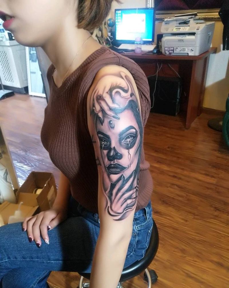美女纹美女纹身图片_手臂欧美人物昆明云南纹人墨刻修改遮盖成品纹身图案