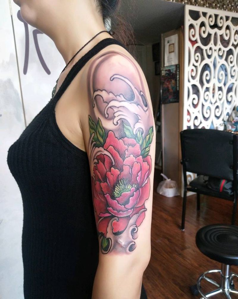 • 女性大花胸纹身_43张霸气漂亮的女性大花胸纹身图案作品