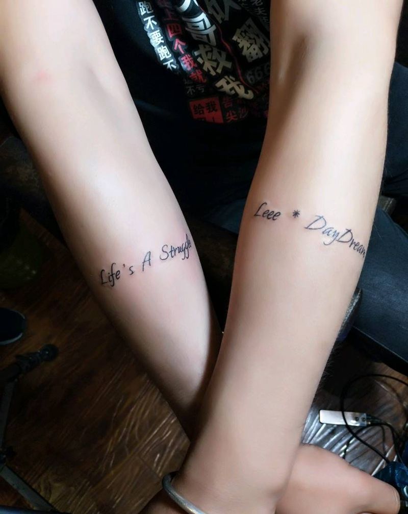 当前位置: 首页 >云南省昆明市纹身店-昆明 纹人墨刻刺青纹身图案>还是小图纹身图片_手臂花体字英文情侣字纹身图案