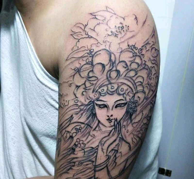当前位置: 首页 >云南省昆明市纹身店-昆明 纹人墨刻刺青纹身图案>花旦纹身图片_手臂新传统花旦彩色纹身图案