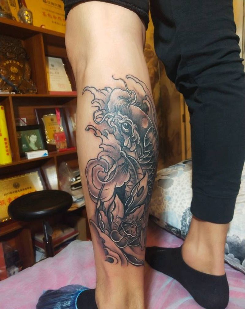 • T网红王老大花腿龙纹身图片_腿部新传统纹身图案