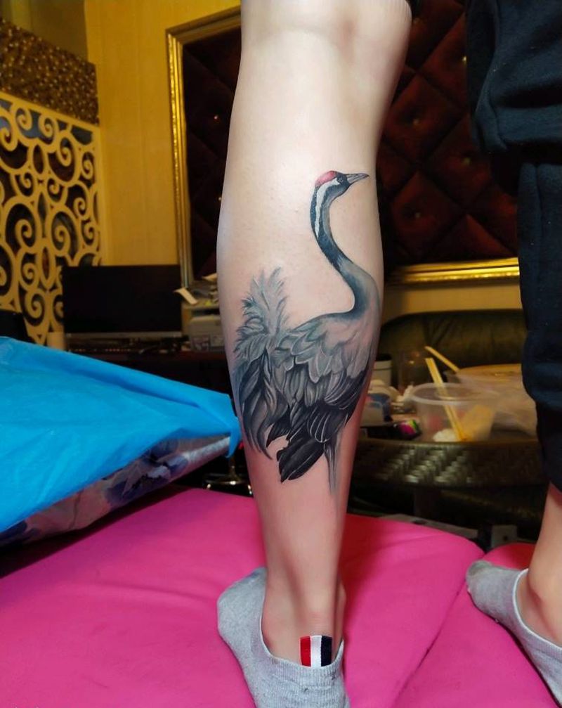 当前位置: 首页 >云南省昆明市纹身店-昆明 纹人墨刻刺青纹身图案>鹤纹身图片_腿部水墨纹身图案