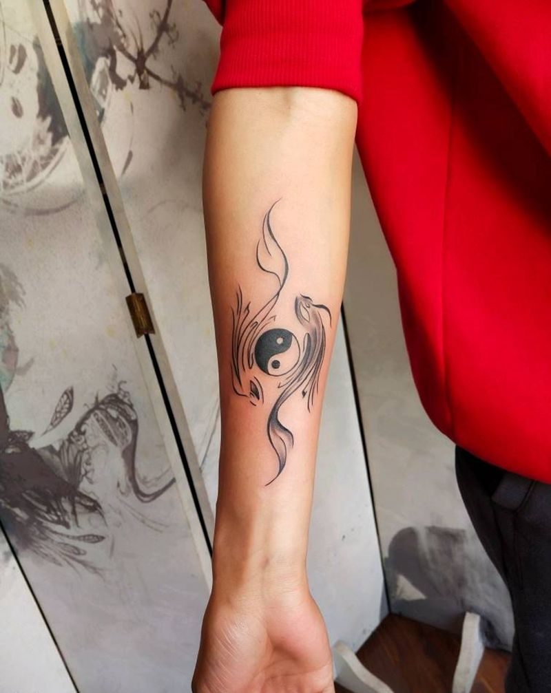 年年有鱼纹身图片_手臂水墨写实鱼纹身图案