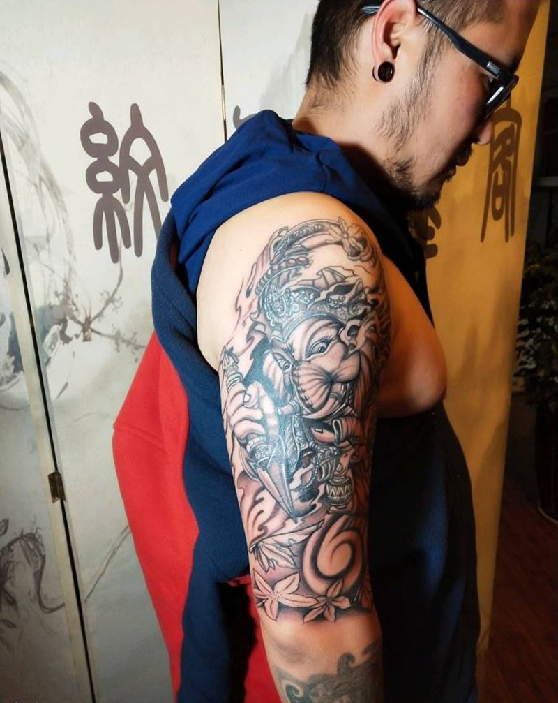 当前位置: 首页 >云南省昆明市纹身店-昆明 纹人墨刻刺青纹身图案>象神纹身图片_手臂新传统纹身图案