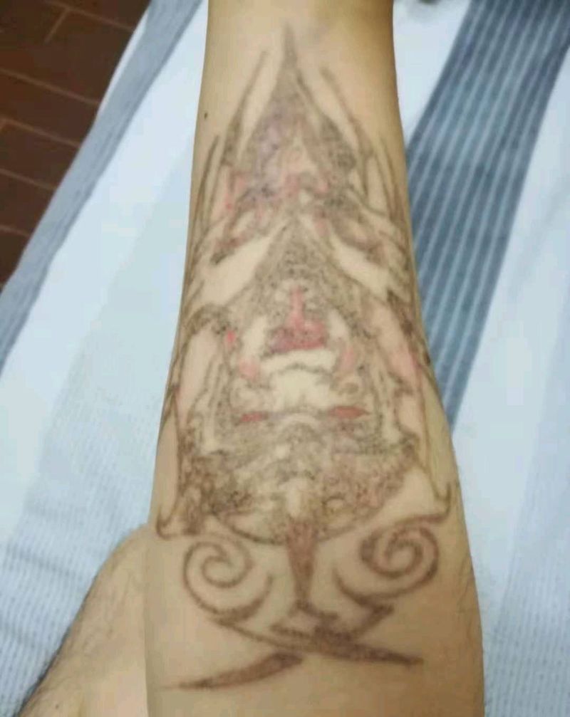 当前位置: 首页 >云南省昆明市纹身店-昆明 纹人墨刻刺青纹身图案>般若遮盖,大臂小臂纹身纹身图片_手臂新传统传统黑灰纹身图案