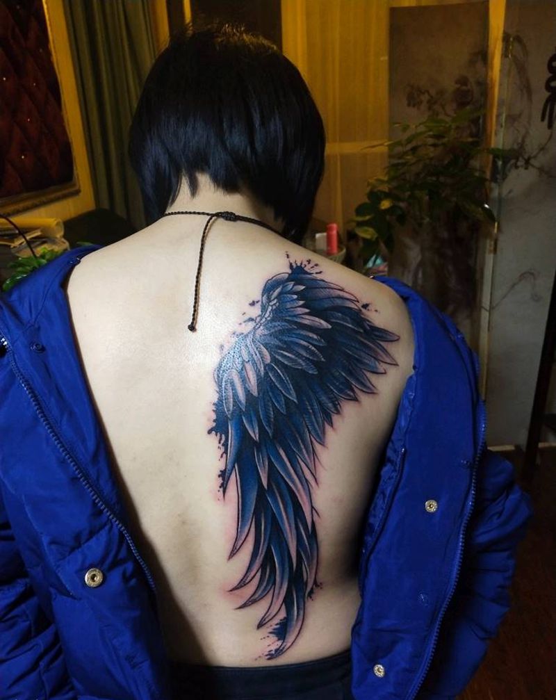 原创翅膀纹身图片_背部彩色纹身图案