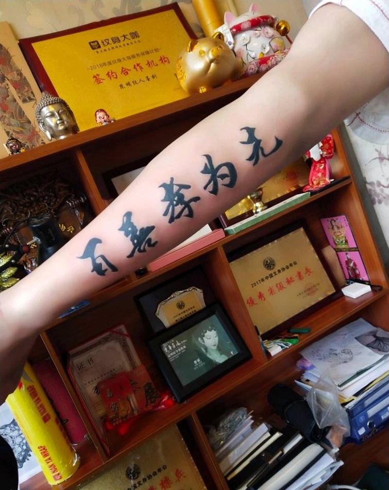 当前位置: 首页 >云南省昆明市纹身店-昆明 纹人墨刻刺青纹身图案>百善孝为先纹身图片_手部花体字毛笔字体纹身图案
