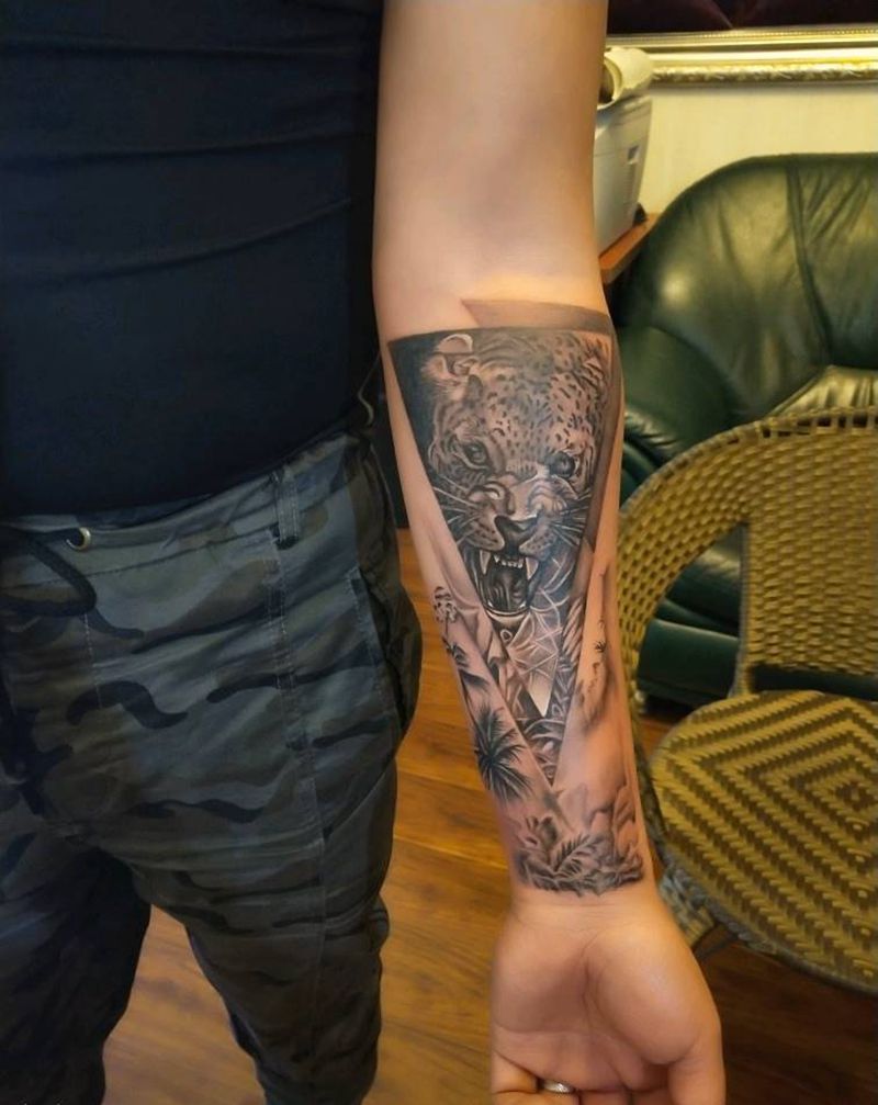 豹纹身图片_手臂欧美写实纹身图案