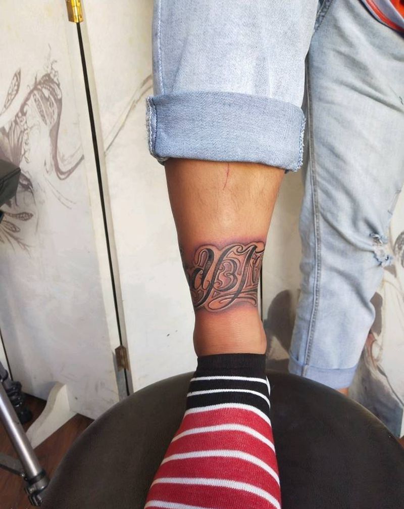 当前位置: 首页 >云南省昆明市纹身店-昆明 纹人墨刻刺青纹身图案>奇卡诺脚环纹身图片_脚部欧美写实奇卡诺字体纹身图案