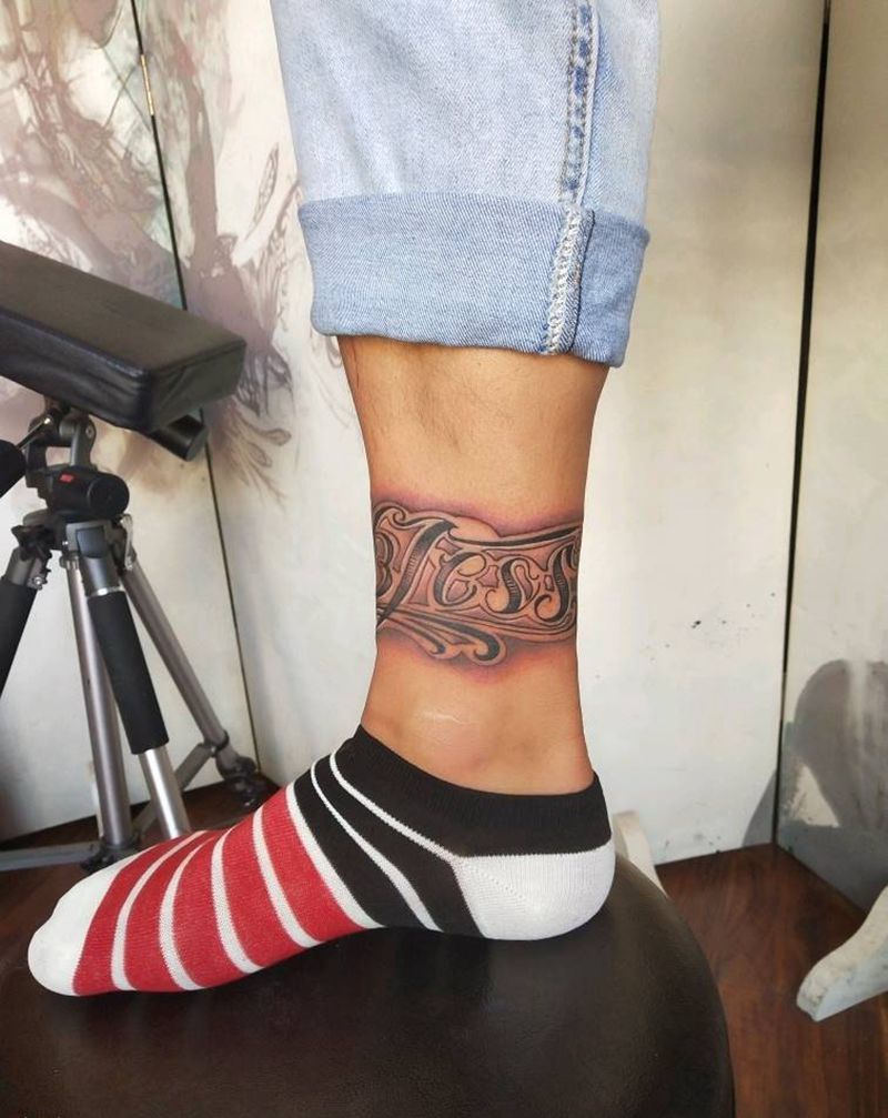 当前位置: 首页 >云南省昆明市纹身店-昆明 纹人墨刻刺青纹身图案>奇卡诺脚环纹身图片_脚部欧美写实奇卡诺字体纹身图案