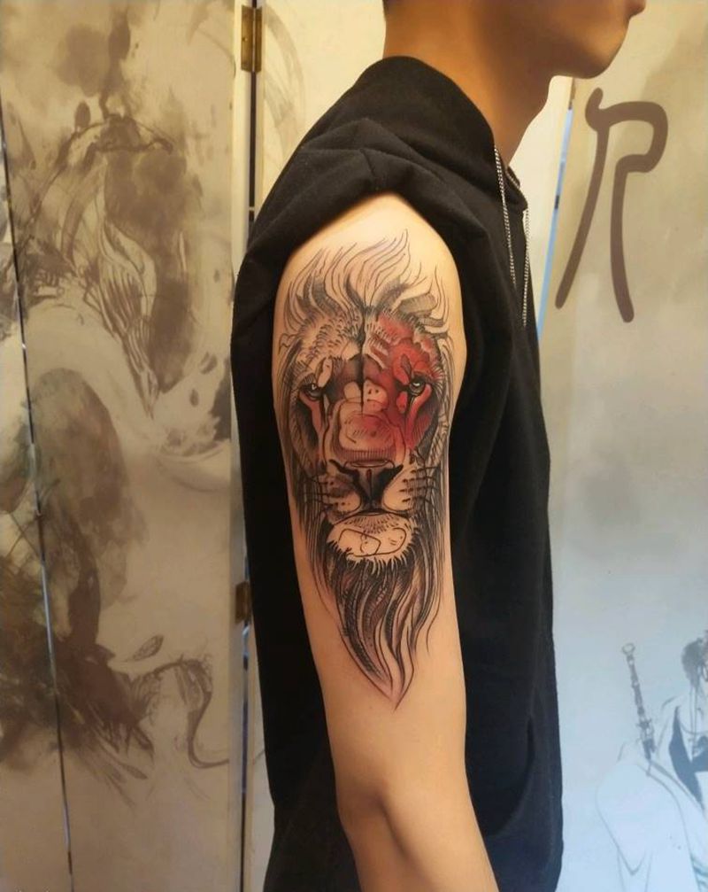 当前位置: 首页 >云南省昆明市纹身店-昆明 纹人墨刻刺青纹身图案>狮纹身图片_手臂水墨速写风格纹身图案