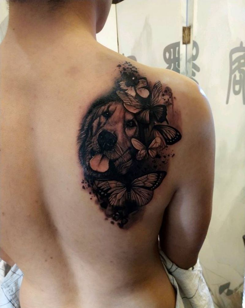 当前位置: 首页 >云南省昆明市纹身店-昆明 纹人墨刻刺青纹身图案>狗狗纹身图片_背部欧美写实水墨纹身图案