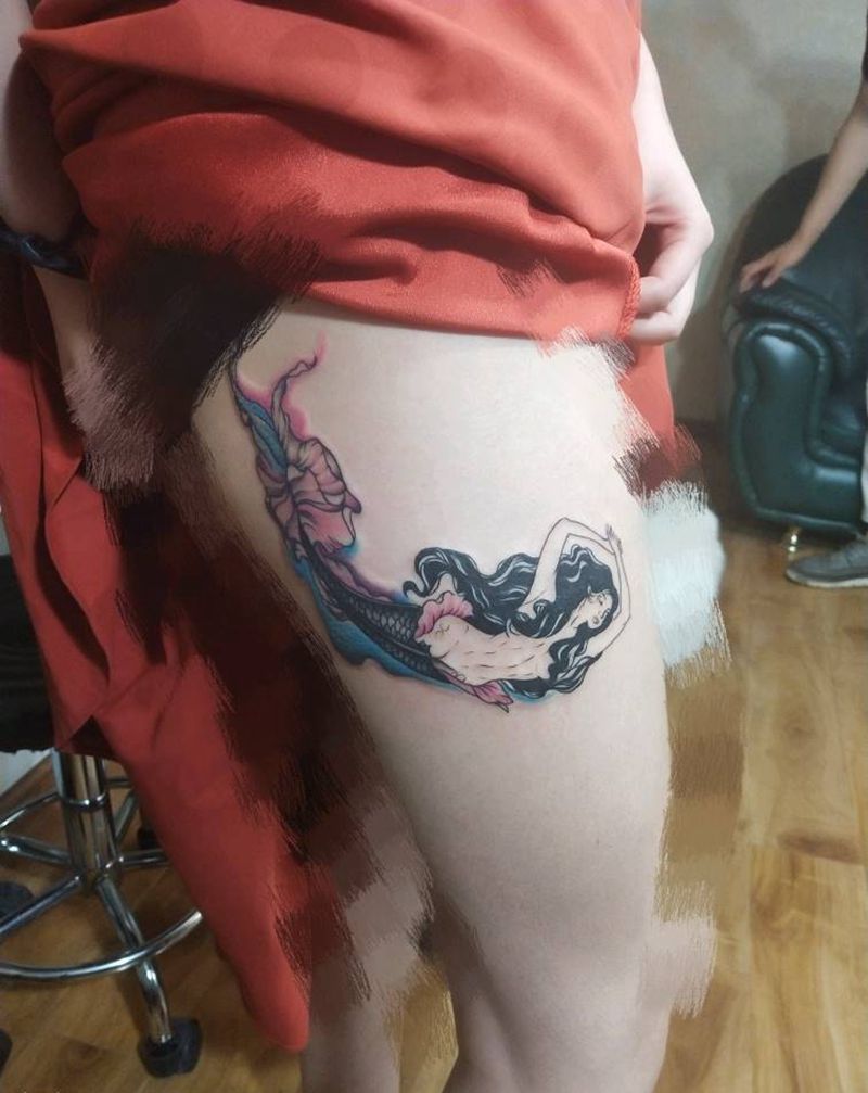 当前位置: 首页 >云南省昆明市纹身店-昆明 纹人墨刻刺青纹身图案>美人鱼纹身图片_腿部水彩纹身图案